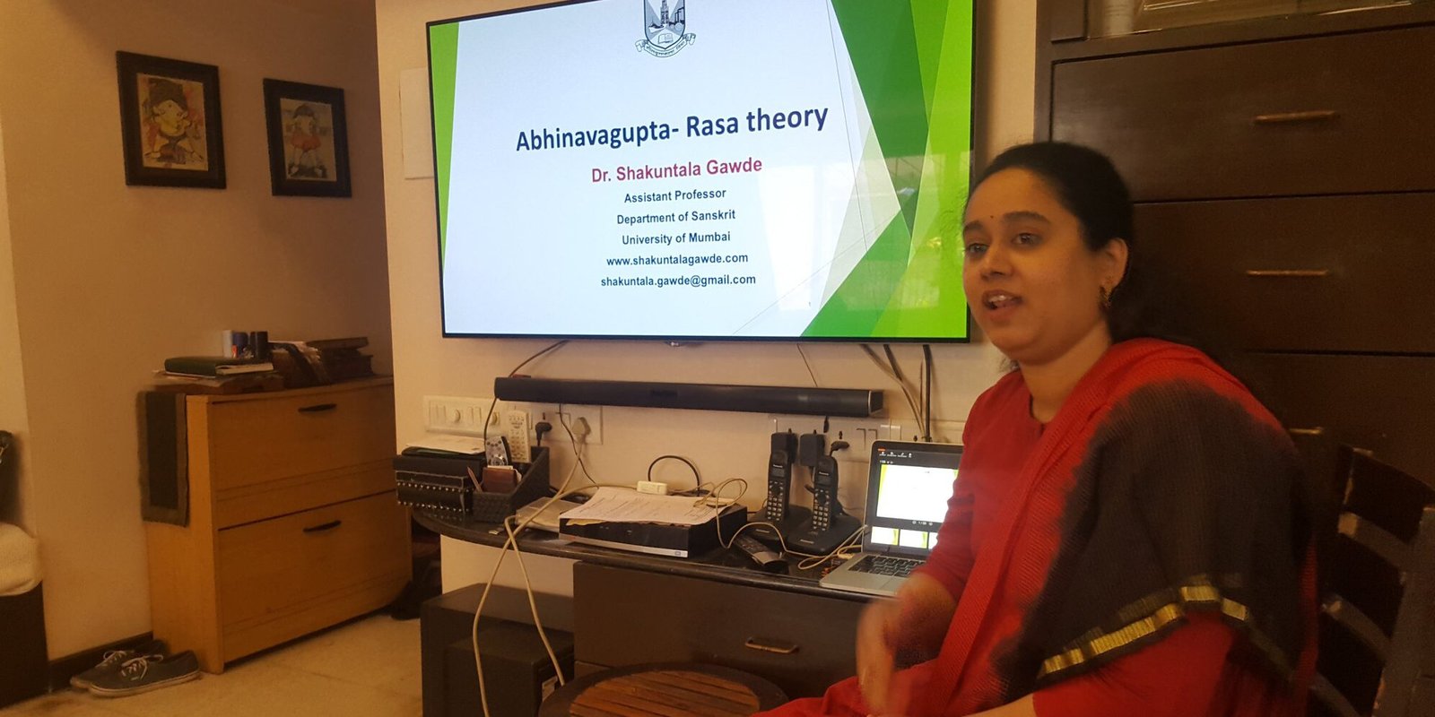 Dr. Shakuntala Gawde gave a lecture on “Abhinavagupta-Rasa Theory” on 6th February 2019 for ‘Playpen Performing Arts Trust’. She has previously engaged two sessions on Rasa theory. This session was specifically focusing on ‘Abhinavagupta’s understanding of Rasa-sutra. Theatre artists, dancers, painters attended this session. There was discussion on the application of Abhinavagupta’s theoretical framework to contemporary arts. There was discussion on factors needed for the artist for being successful. Different elements which make connoisseur capable for Rasa relish were discussed with examples from contemporary arts. Abhinavagupta understands Rasa as a means to attain the pure bliss which is similar to the bliss of Moksha.