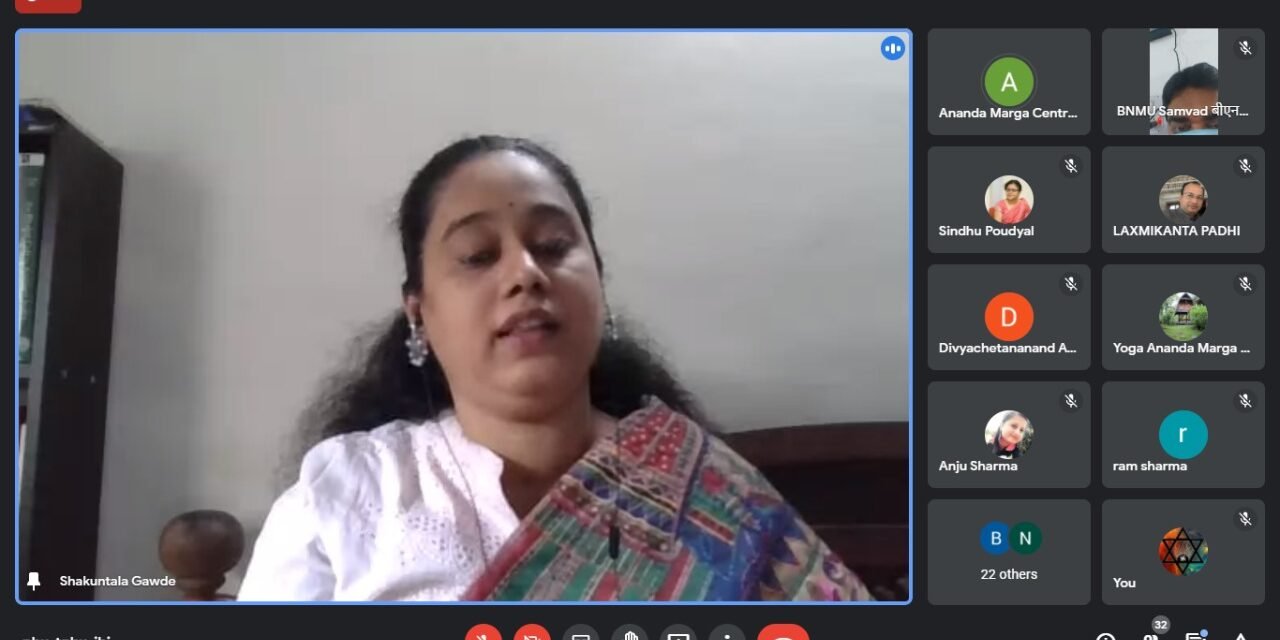 Dr. Shakuntala Gawde presented on the philosophical contribution of Shrii Shrii Anandamurtiji’s Philosophy in the National webinar organized on the occasion of Centenary Birth Anniversary of Shrii Shrii Anandamurtiji by Renaissance Universal (RU). She propounded that Ānandamurti was a seer of modern India who had the vision of holistic development of human being. Therefore, his philosophy is all-inclusive and tends to harmonise diverse philosophical trends.