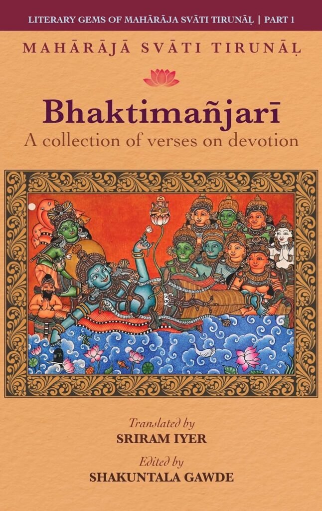 Bhakti-Mañjarī is a unique poem composed by Mahārājā Svāti Tirunāḷ (1813- 1846) with bhakti as its central theme. With the Śrīmad-Bhāgavata Purāṇa as its basis, Bhakti-Mañjarī expounds the philosophy of bhakti through its one thousand poetic verses divided over ten śatakas set to various metres. The supremacy of bhakti over all spiritual paths, the various classes of devotees, the selfless and spontaneous compassion of the Lord, the futility of human birth devoid of bhakti, etc. are some of the topics discussed in the work. A major portion of the work is dedicated to an elaborate delineation of the nine forms of devotion viz. śravaṇa, kīrtana, smaraṇa, pāda-sevana, arcana, vandana, dāsya, sakhya and ātma-nivedana. Episodes from the Śrīmad-Bhāgavata Purāṇa such as the life of Prahlāda, the redemption of Gajendra, the redemption of Ajāmila, the self-surrender of Bali, etc, are briefly represented in the course of describing the various forms of devotion. The creation of the universe, its geographical divisions, duties of the four classes and stages of life, the procedure of reciting the Śrīmad-Bhāgavata Purāṇa, the rules of japa, consecration of sacred images, the greatness of Gaṅgā and Tulasī are some of the other highlights of this great work. The brief representation of the pristine philosophy of bhakti through verses embellished with figures of sound and sense makes the work a cherished treasure of scholars and devotees, alike. :